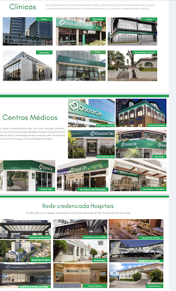 Clínicas de diagnósticos e tratamentos como fisioterapias, ecografias, raio-x, mamografias, entre outros.